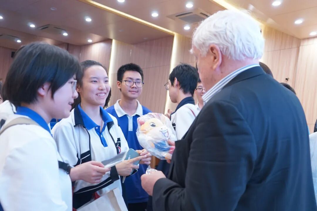 近两小时的分享转瞬即逝,同学们依旧意犹未尽。讲座结束后,大家纷纷围拢在教授身边,继续交流探讨、求学问道。红岭学子为赫克曼教授送上专属“红岭牛”吉祥物,并讲解其承载的福气寓意,以这份饱含心意的礼物,致谢教授的倾心分享与谆谆教诲。