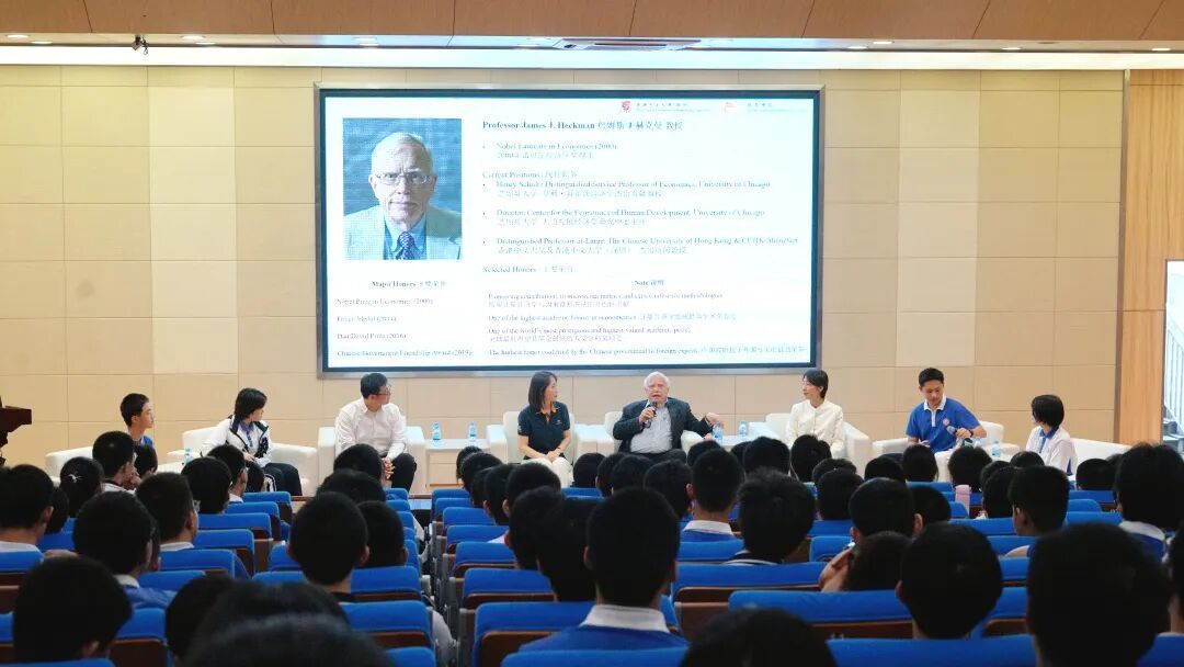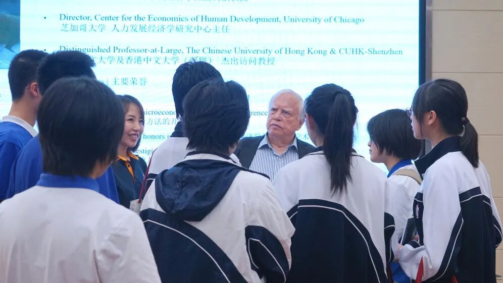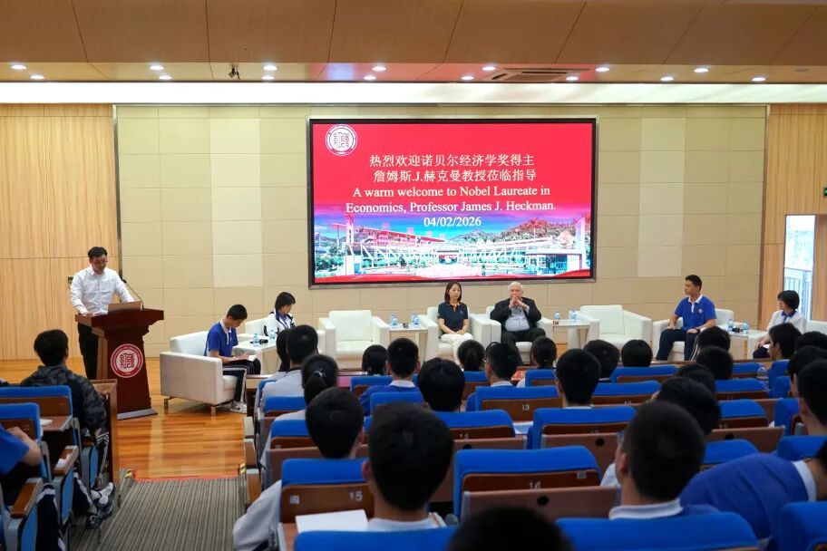 4月2日下午,红岭中学(红岭教育集团)四号报告厅暖意融融、思想激荡。一场跨越山海的深度交流在此展开,2000年诺贝尔经济学奖获得者James J. Heckman(詹姆斯・赫克曼)教授亲临现场,与数百名红岭学子围坐畅谈。无讲稿、无PPT,只有一位学术大师与青春少年的真诚对话,全场以英文流畅互动,思维火花频频闪耀。