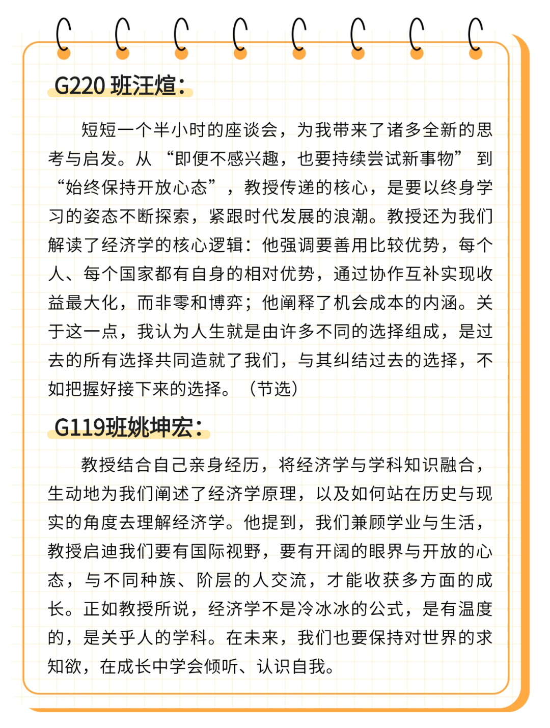 为帮助学子们更深入地研习经济学,教授还现场推荐了《国富论》《蜜蜂的寓言》两本著作,助力大家锤炼逻辑思维、提升思考能力。