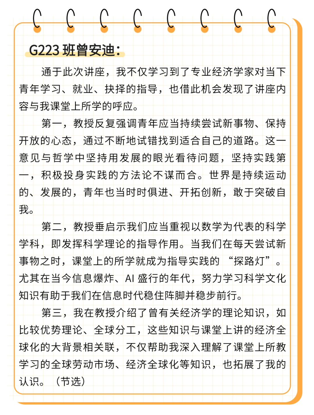 读万卷书,亦要行万里路。这场与诺奖得主的近距离对话,让红岭学子真切感悟到“经济学就在身边”。此次交流,不仅为学子们打开了认识经济学的新窗口,更让学子们收获了关于成长、选择与探索的人生启迪。